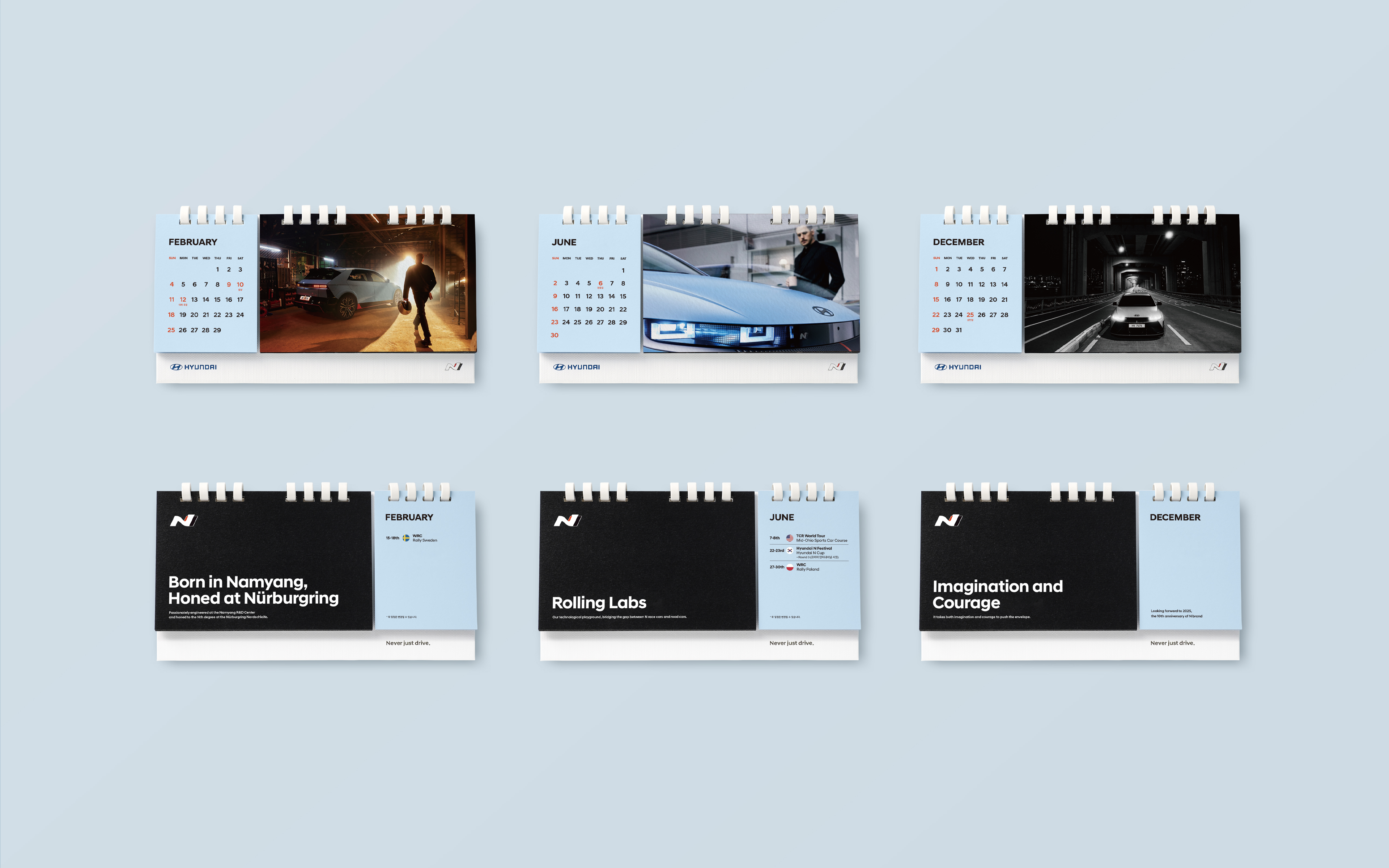 The Hyundai N Calendar is a calendar that conveys the schedule of Hyundai Motorsports team's matches and the feel of N vehicles. You can check the updated match schedule every month and share the passion of Hyundai Motorsports.